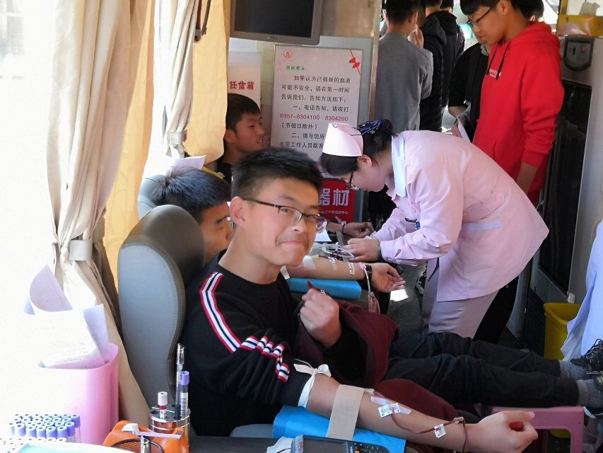 在太原献血中心的大力支持下,中午一点半,团支书和班长带领班内二十多名同学到学校献血车处进行献血。大部分同学虽然是第一次献血,不但没有退缩,反而积极地参与其中,完美地诠释了皇冠hg0086客户端们青年一代不惧痛苦,无私奉献的精神。班主任也进行了他的第九次献血,让所有同学都心生敬佩。一股股青春热血,一颗颗热心满怀,使整个活动现场气氛达到高潮。
