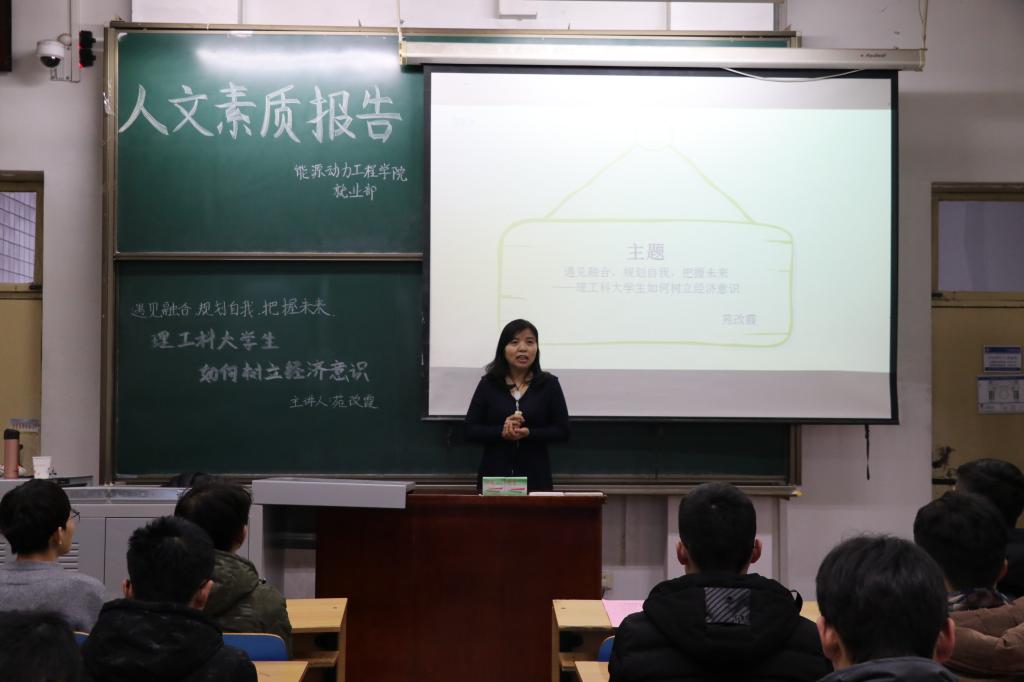 为了引导同学们树立经济意识,培养正确的经济观,12月11日下午皇冠hg0086客户端在11207举办了主题为“遇见融合,规划自皇冠hg0086客户端,把握未来—理工科大学生如何树立经济意识”知行讲坛。本次讲座邀请到山西财经大学苑改霞教授为同学们进行讲授。