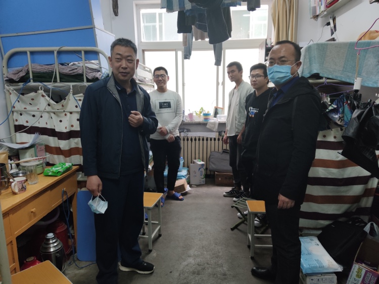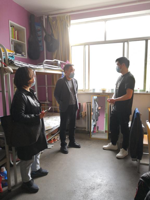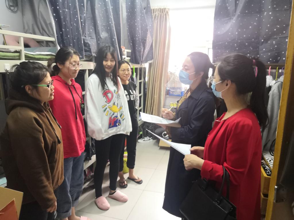 检查过程中,老师们详细查看了每一间宿舍的《学生体温异常应急流程图》的张贴情况,宿舍内用水用电情况,宿舍每日消毒和通风情况等。同时,关切地询问了同学们目前遇到的困难和考研就业情况,并希望大家尽快调整状态,抓紧时间完成毕业设计等教学任务。对于同学们反映的希望学院能够提供考研复试场地的问题,院领导马上召开现场会议,决定腾出5间办公场所为毕业生提供必要的服务。