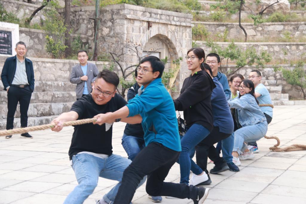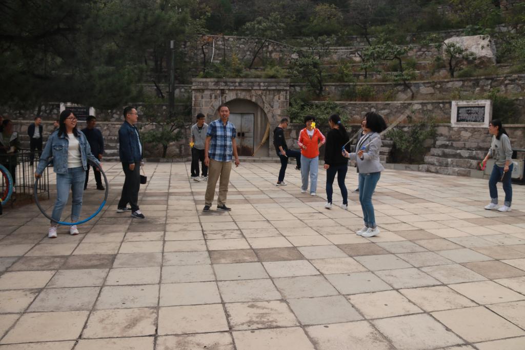 参与活动的教职工从学院出发,在柏林园孔子像前,老师们认真学习了垃圾分类的知识,并将手中写有不同垃圾名称的便利贴,准确地粘贴到相应颜色的垃圾桶中。随后,大家拾阶而上,来到了二龙山爱心台。在爱心台上,老师们选择各自擅长的体育项目运动起来,有的老师转起了呼啦圈,有的老师踢起了毽子,还有的老师跳起了跳绳,充分享受着清新怡人的空气和活力十足的运动带来的快乐。拔河比赛将活动推向了高潮,老师们自发组成了2支队伍。比赛开始,双方紧握长绳,卯足力气,使劲向后拉。“一二加油,一二加油”,未参加比赛的老师们自发组成了啦啦队,为场上队员加油。呐喊声此起彼伏,飘荡在整个爱心台。