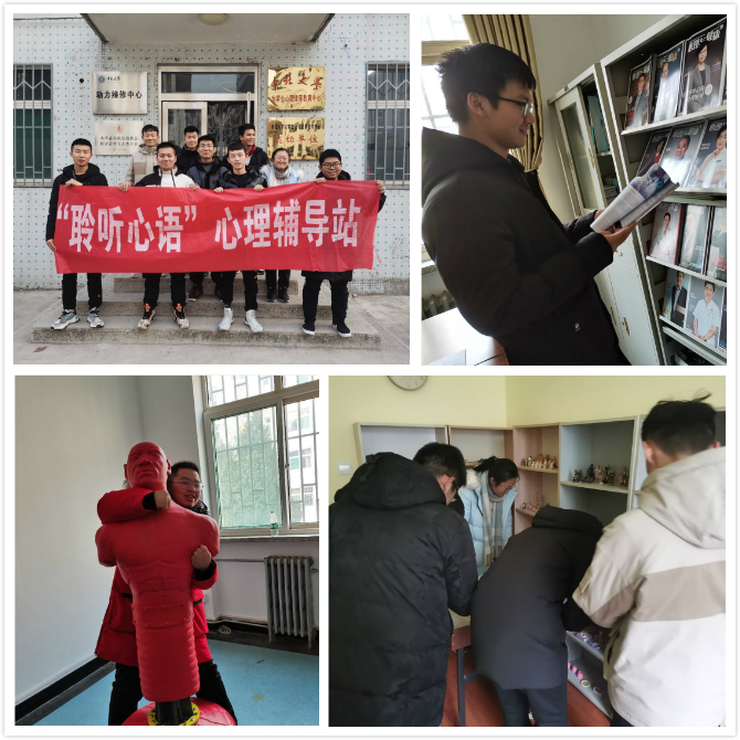 活动前期,院聆听心语心理站通过QQ向各班心理联络员介绍了心理中心各功能室的相关资料,组织各班联络员在班级内进行统一宣传,同时也安排引导员提前学习功能室宣泄人、沙盘等设备的使用方法,做好知识储备,完成与各班级的对接工作。随后,各引导员按照预约时间带领班级同学前往小白楼进行参观。参观过程中,引导员对各功能室与心理设备做了详细的介绍与说明,对同学提出的问题进行一一解答。通过彼此间的交流,以及对各器械的试用,同学们对心理咨询中心有了一定的了解,懂得了情绪宣泄的方式,知晓了调节情绪的方法,更让同学们真切地感受到必要时心理咨询对大学生心理健康调节的重要性。