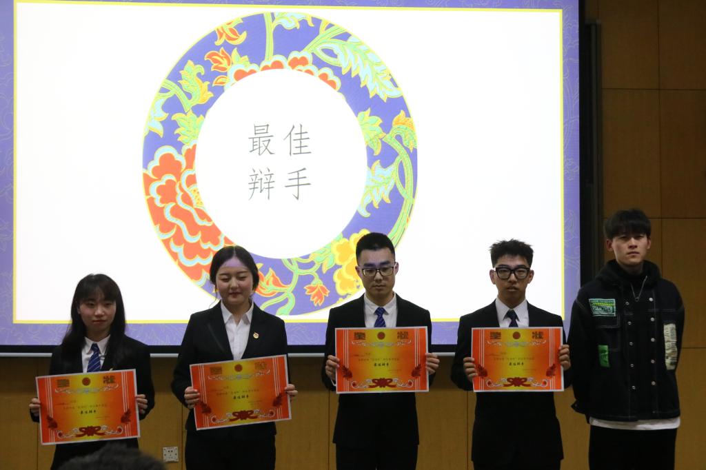 活动伊始,主持人对与会嘉宾以及比赛规则进行了简单的介绍后,大赛便迎来了第一场季殿对决。比赛双方针对“德云女孩的出现对传统相声的影响”展开唇枪舌战,场上辩手们各持观点,对此现象展开全面分析和激烈争辩,不分高下。随着时间流逝,比赛结束,双方辩手却意犹未尽。随后,悠悠球社为大家带来了精彩绝伦的表演,冠亚之争也如约而至。辩论双方选手针对“广告竞争对经济发展的影响”,由国内走向国际,以小见大,辩论精彩异常。比赛中,来自四支强队的各位辩手们表现出独具风采的个人魅力,争锋现在,机辩未来。经过一番紧张激烈的角逐,四位同学荣获最佳辩手奖项,20160404班夺冠,20160142班获得亚军,20160403班为季军。