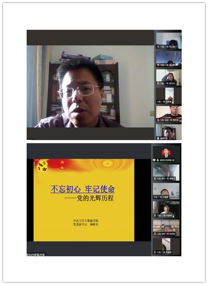 大数据学院党委副书记杨晓东老师带领同学们一起走进了“党的光辉历程”,同学们经过这堂课更加了解了党的历史,并表示要继承并发扬先辈们的精神,珍惜当下生活的来之不易。